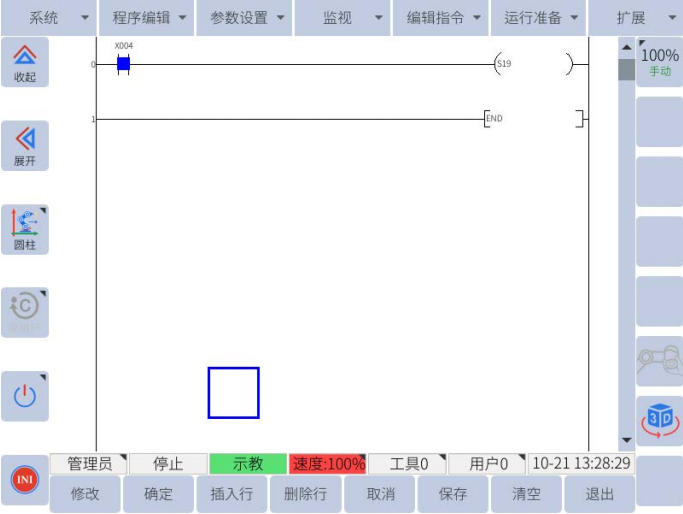 当X004 置 1 时,后触发防护停止暂停,当防护停止信号重新连接后,任务能自动恢复运行。