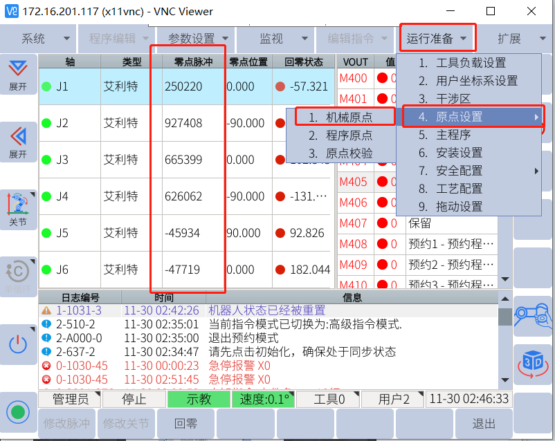 登录管理员模式------点击运行准备----原点设置----机械原点,如下图为零点脉冲值。(新机收到后需要拍照保存该界面)