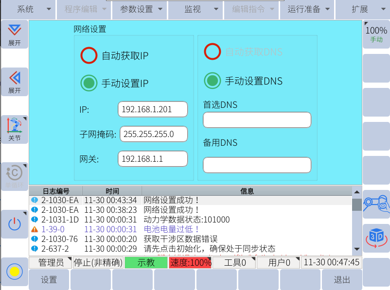 答:检测一下机器人IP与电脑是否在同一网段,ping能否ping通,配置页面是否有设置对应的机器人IP.