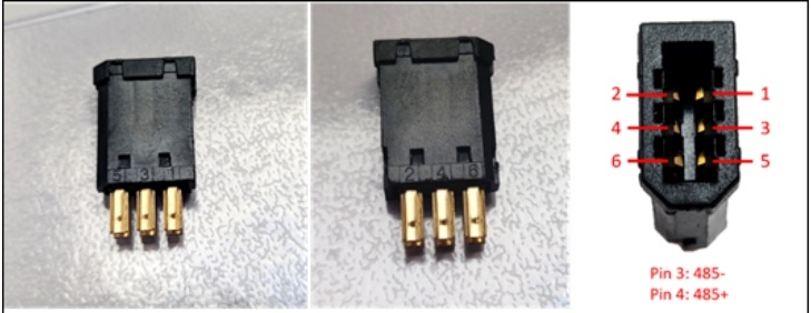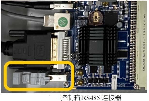 在控制柜接口处我们可以看到RS485接口,该接口就是我们的485接口,modbus_rtu时用到该接口,其中针脚3对应485-,针脚4对应485+,如下图。