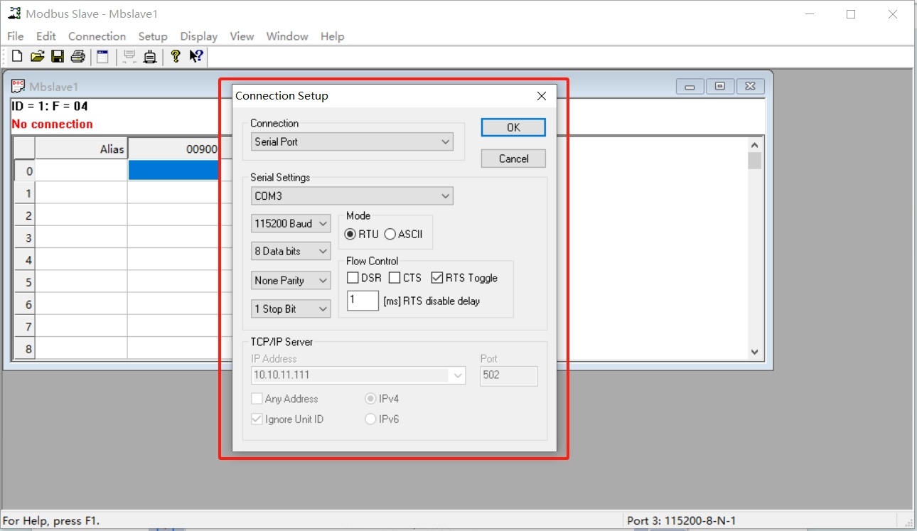 将机器人端485线接好,目前波特率为115200,助手端连接对应设置参数即可,如下图所示