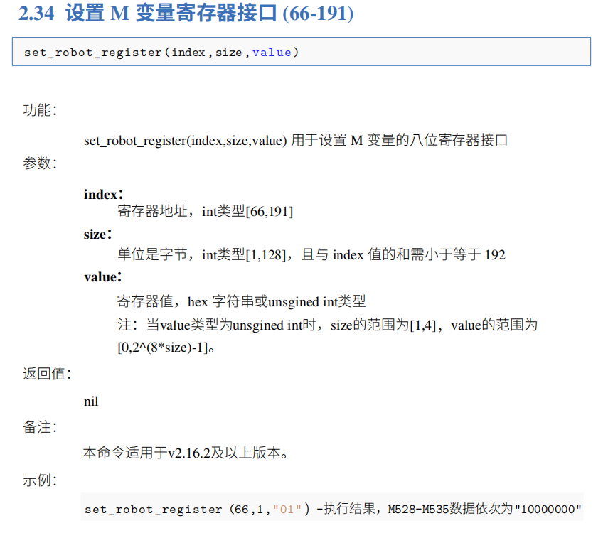 目前Elite机器人支持对虚拟变量M的操作,M为BIT型变量。单个M变量为线圈,多个连续的M变量可为寄存器 。