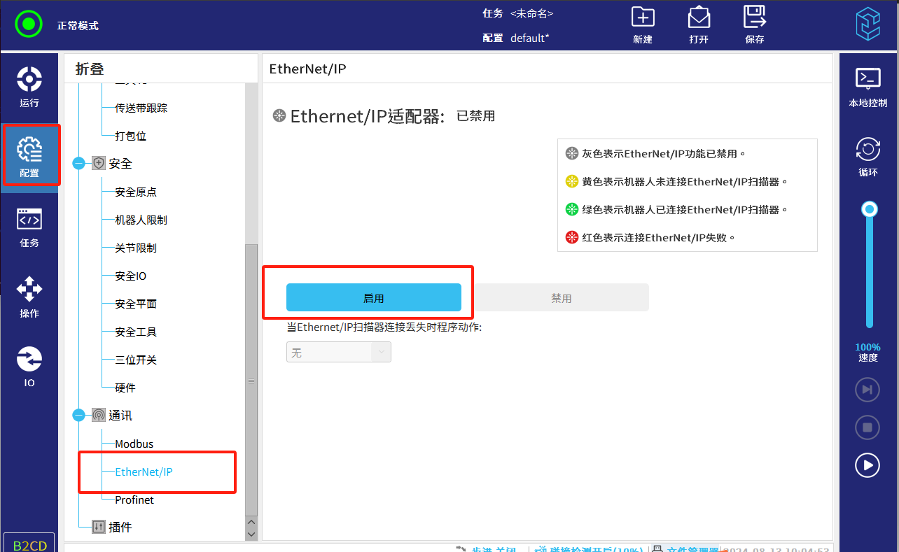 设置好 IP 地址及开启 Ethernet/IP 功能即可,无需进行其他设置